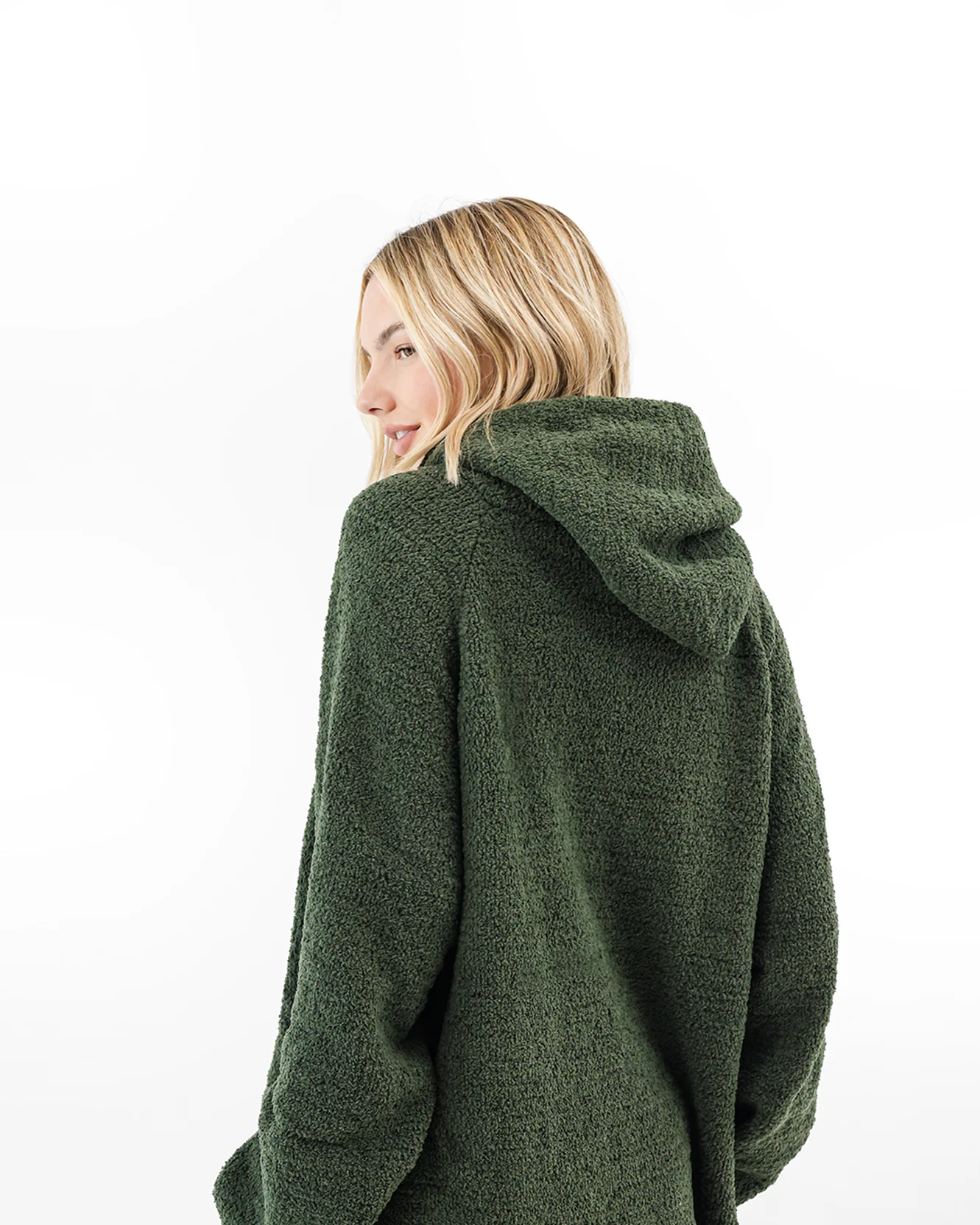 A large, loose-fitting, and ultra soft hooded pullover made with our signature snug microfiber blend. Our first unisex one-size-fits-most garment for matching his and hers coziness.