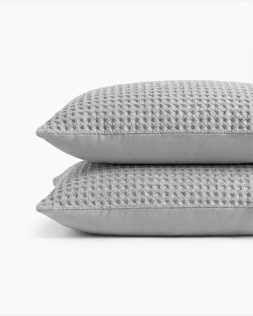 A pair of impossibly cozy pillow covers featuring a no-slip envelope closure. Made with waffle-textured Snug fabric on one side and smooth viscose from bamboo on the other, these soft and stylish shams are perfect for those on a constant quest for the cool side of the pillow.